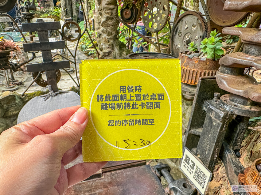 工作人員帶位入座後就會放置壓克力牌在桌上,上面會有每組客人停留時間,下午入園限時1.5小時唷!!