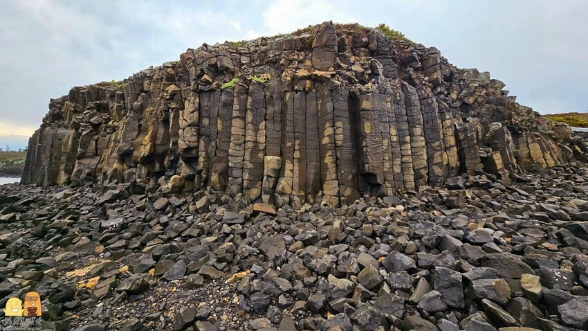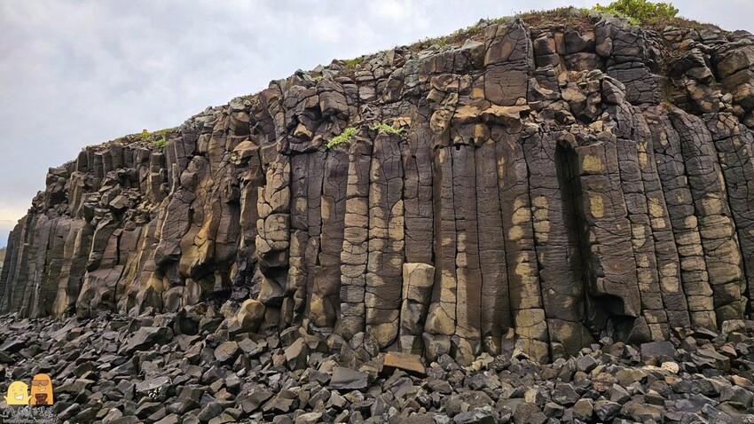 據說以前上方是魚塭,只要下雨後水流就會順著玄武岩柱流下來,就像是瀑布般一樣壯觀,故有此美稱