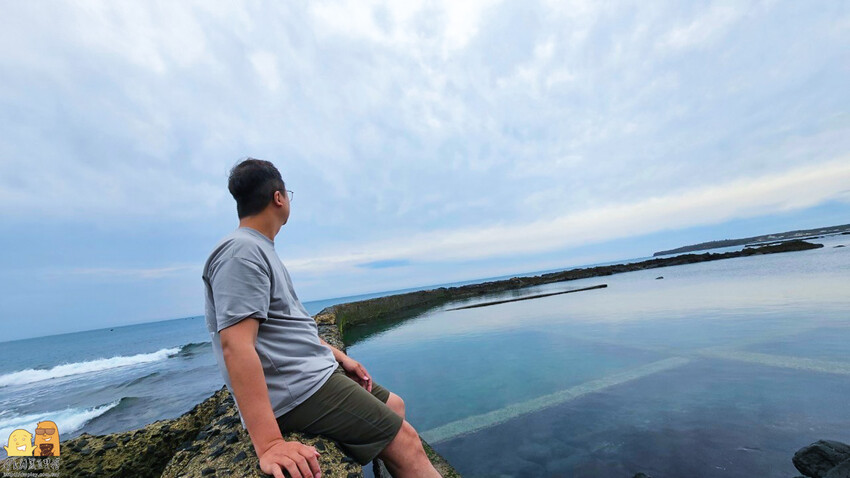 不過除了這池西岩瀑外,最多人打卡拍照的是旁邊的【廢棄九孔養殖場】,只要選到漲潮的時間來