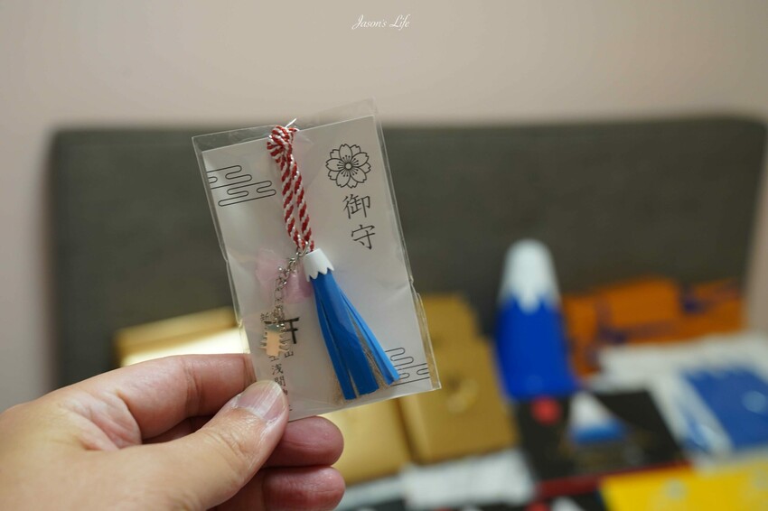 這裡的御守就是繡上了這裡經典的美景:富士山、忠靈塔和櫻花
