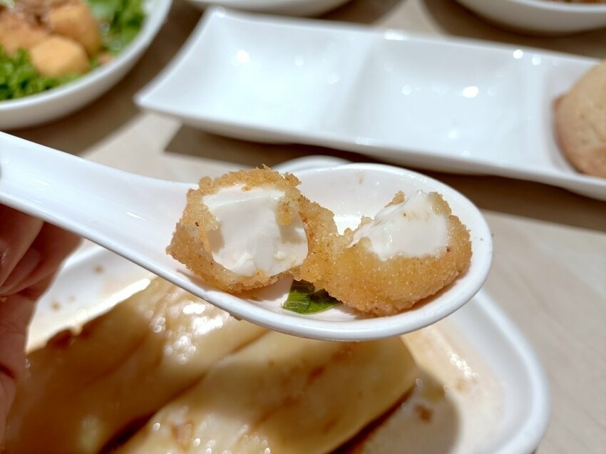 炸到金黃薄脆,裡面的豆腐使用的是嫩豆腐不是雞蛋豆腐