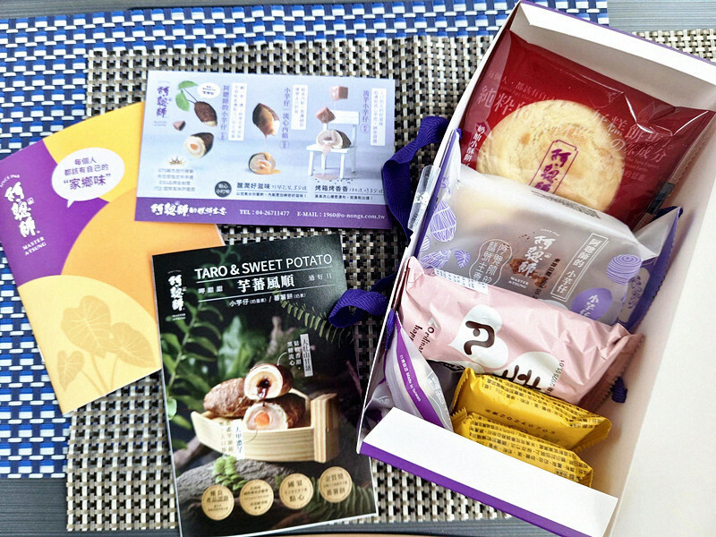 打開小禮盒會發現裡面的內容還挺豐富的,除了招牌小芋仔,還有太陽餅,鳳梨酥和芋頭牛軋糖等,各種招牌口味都吃得到
