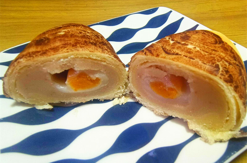 沒想到造型可愛的小芋仔,一切開竟然有驚喜,裡面的內餡除了蛋黃還有麻糬,一次就能吃到三種口味,難怪是阿聰師的熱賣產品