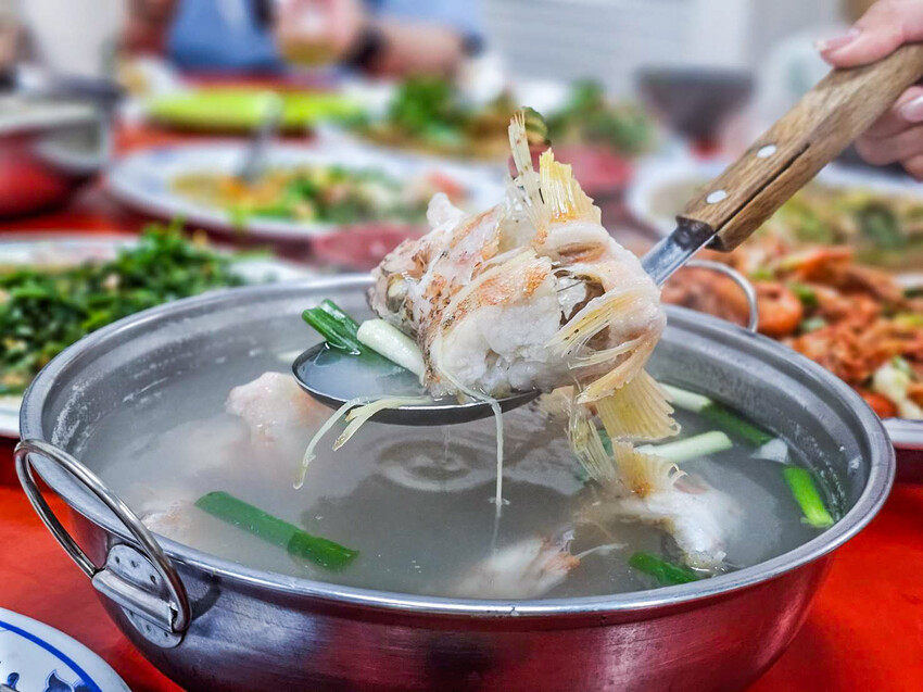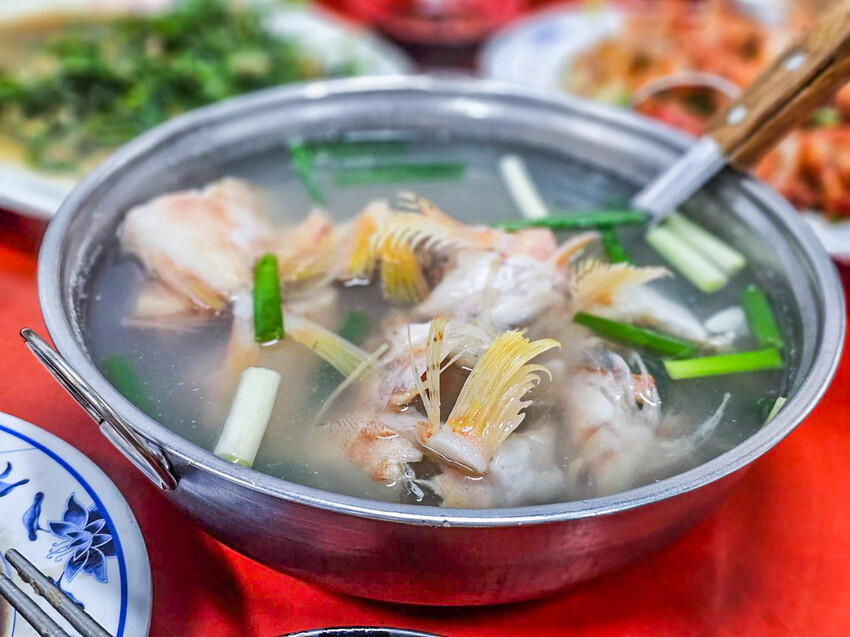 鮮魚湯,我們今天點了石狗公,鮮魚就是時價,所以每次的單點多少錢是浮動的,湯頭還不錯,鮮甜鮮甜的,魚肉蠻緊實細緻的,而且我們點之前有去看一下魚的眼睛,還蠻晶瑩剔透的看起來就是新鮮