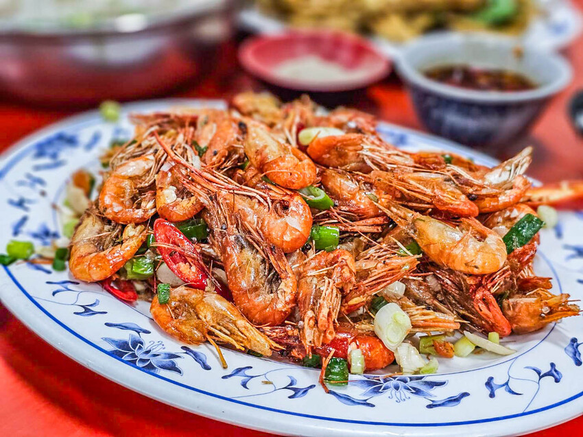 酥炸溪蝦,溪蝦的話就是尺寸大份量也蠻多的,上面還有撒上椒鹽提鮮,吃起來鹹香鹹香的很下酒,不過有的溪蝦角有點尖,吃的時候要小心不要扎到嘴巴,吃到最後也是打包收場,回家氣炸一下也很好吃