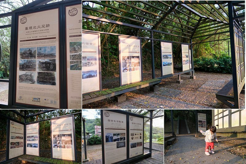 往另一邊走是「北火時光廊」,聽導覽老師介紹才知道,原來這裡曾經是北火電廠員工的宿舍,目前只剩下一側的大門,現已成為露天的北火歷史展示場所。