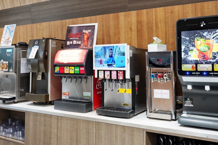 冷熱飲選擇更是多!咖啡機、果汁機、沙瓦系列、奶茶、冰沙..等,還有玻璃瓶裝飲料~