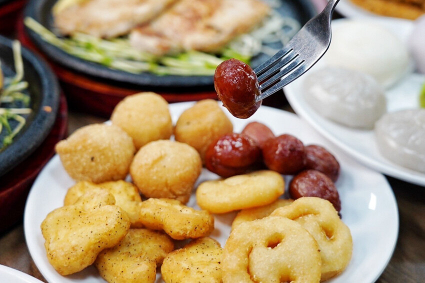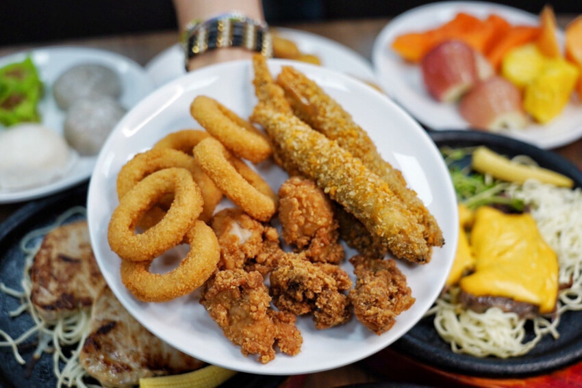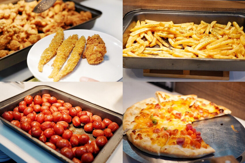 吃完主食還能來點炸物點心!雞塊、洋蔥圈、柳葉魚、雞米花、烤香腸..等,水晶餃趁熱吃皮挺Q,冷掉皮比較硬,重點是豬肉內餡調和剛好,沒有豬腥味,即使熱量很高我還是吃了兩顆~
