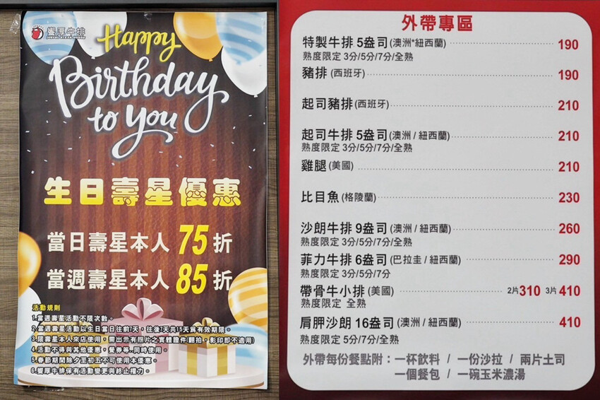 大家最期待的壽星優惠活動!壽星當日與當週壽星都有優惠活動,當週壽星我覺得很划算,前後七天一共15天都適用,加上內用消費不收服務費,等於當日壽星不用300元就能吃到飽,當週壽星吃到飽不用340元~