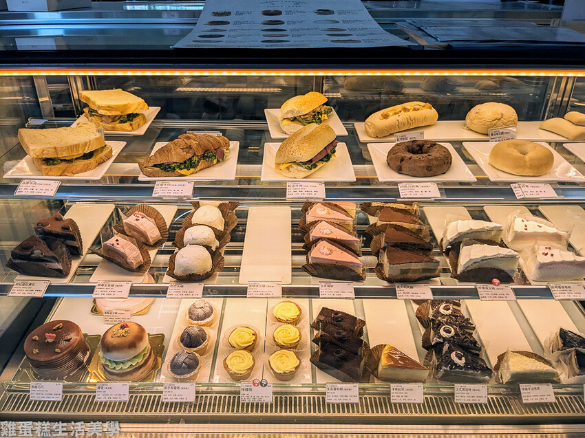 ▲玻璃櫥窗內有多款蛋糕輕食可選,輕食比較可惜不是現做的。