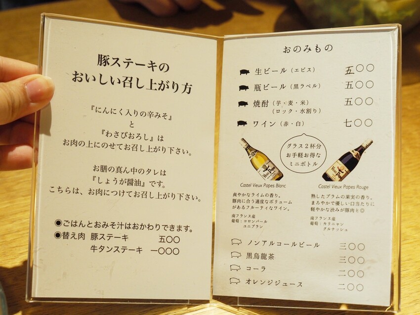 菜單也是簡潔易懂,只額外列出酒水、飲料的菜單,左邊僅介紹吃豬排會用到的醬料。
