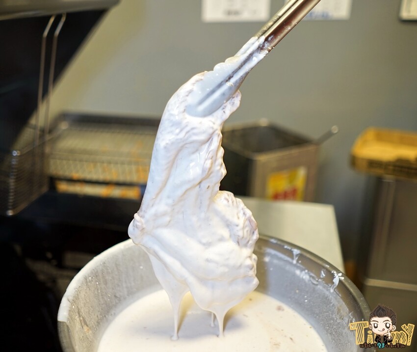 外皮是像卡啦雞酥脆的炸皮,吃起來鹹香中帶奶香的甜味