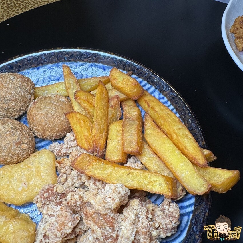 我們點了起司芋泥球、甘梅地瓜薯、小雞塊、雞軟骨和脆皮香菇。