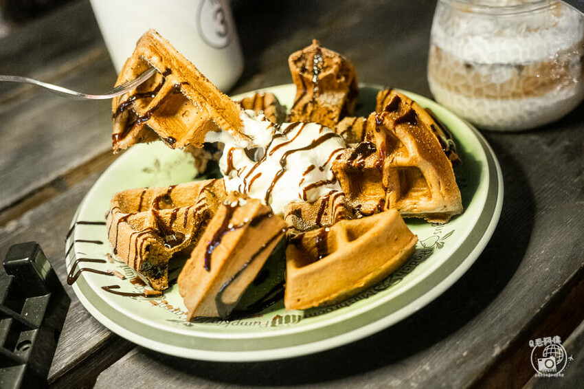 阿新點的是鬆餅,上餐速度很快,點完沒多久就上桌了,鬆餅外觀看起來很普通,但味道很不錯,外皮酥口微脆,內部香甜Q彈,當真給了阿新很大驚喜感。
