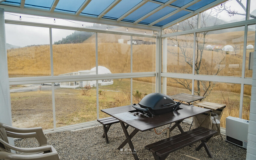 最後,「GRAND VERDE RESORT」是我非常期待的露營營區,有著絕美的山景及遼闊草原,是在台灣幾乎是看不到的絕美營區。雖然很遺憾這次遇到了氣候不佳的狀況,絕大部分的戶外設施及露天泡湯都沒有辦法體驗,但是還好圓形帳內的空間很大,在帳內還是可以享受雨天景色及室內遊戲,雖然露營本來就是個和“老天爺賭注天氣”的戶外活動,還是覺得可惜沒辦法看到晴天景色,就讓這次的遺憾化作下次的再訪吧!