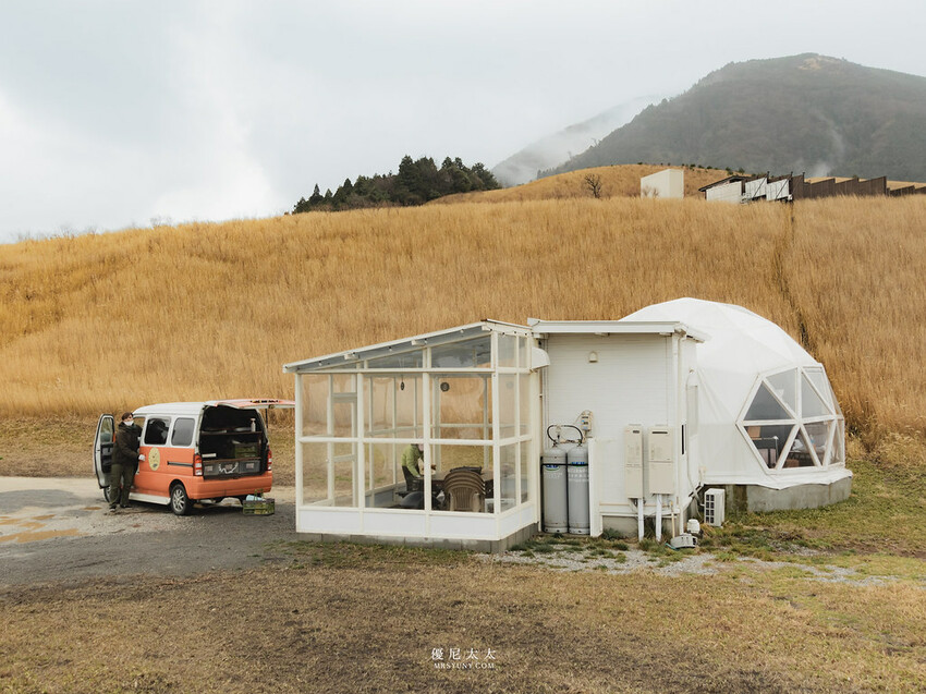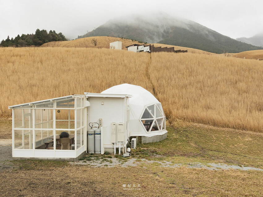 一望無際的大草原,隨著徐徐微風吹來,放眼望去便是整個遼闊的自然景色。沒有想到,“一山丘一戶”的圓頂露營帳真的存在,這是在台灣無法體驗到的遼闊豪華露營區。這間位於大分縣的「GRAND VERDE RESORT」,於2022年開幕,佔地約25萬平方公尺,相當於35個足球場大小。主打擁有遼闊無邊的山丘景色及自然生態,旅人可以選擇在露天咖啡巴士站品嚐咖啡、泡露天溫泉或三溫暖賞景,或是到營區的動物區與綿羊小白兔們互動。幾乎是擁有整個山頭的腹地,甚至被規劃成越野車步道,現場可以租借越野車在草原奔馳兜風或是把玩無人機,豐富的戶外活動,幾乎是check-in後就直接玩到離園。