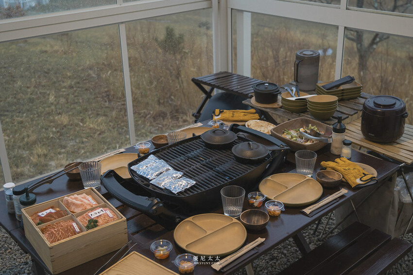 餐點部分有供應兩餐,晚餐及早餐,皆是營區會在指定時間,將餐點安置在玻璃屋中,也會備齊所有燒烤用具及餐具,完全不需要自己準備東西,好好的品嚐園區提供的餐點即可。