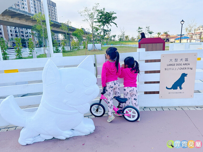 來這遛毛小孩也超方便有專屬的活動空間,以體重來區分成大型犬和小型犬,裡面還有草地、飲水槽還有清洗區等