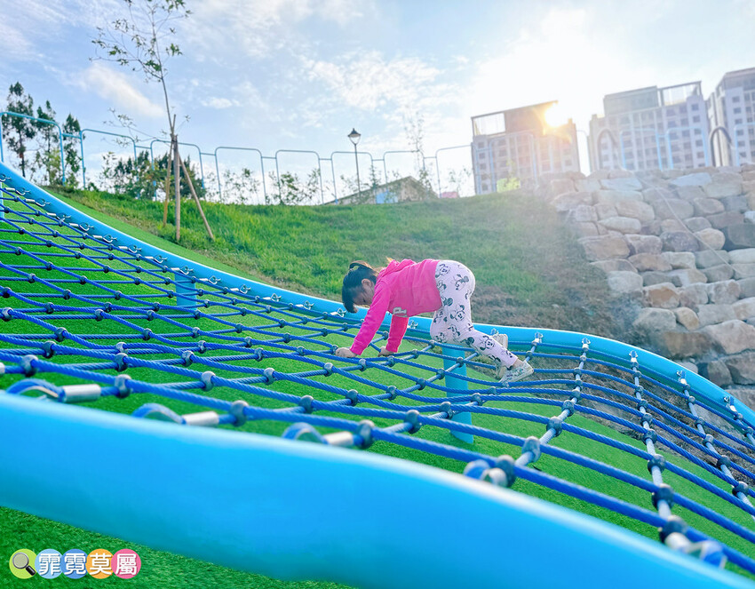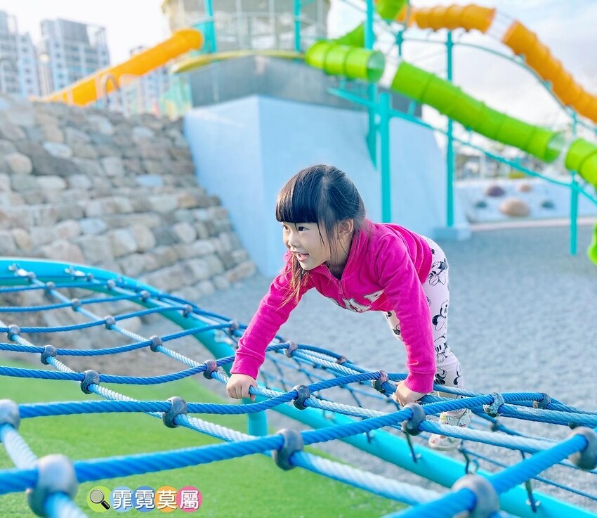 這座公園最吸引孩子們的就是高搭溜滑梯,有11公尺高超刺激! 有各種豐富遊樂設施,而且還可以騎滑步車或溜直排輪~非常放電孩子