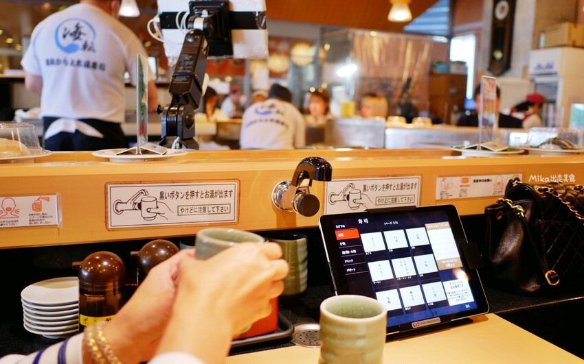 可以選擇平板點餐,也可以直接拿迴轉壽司盤上的。