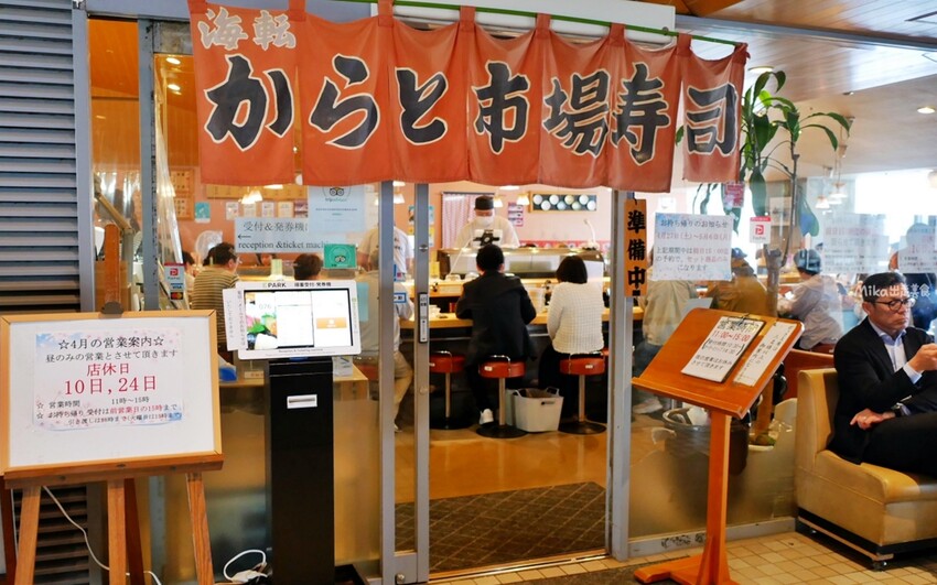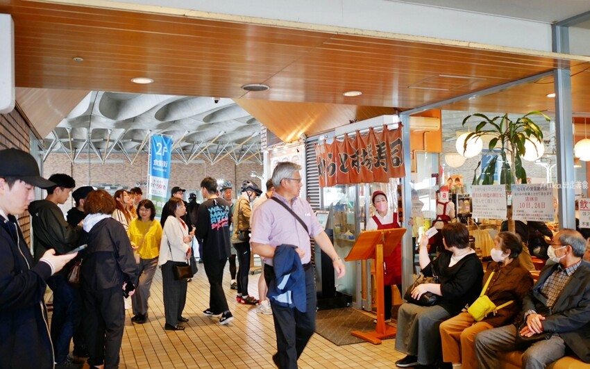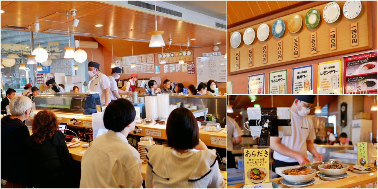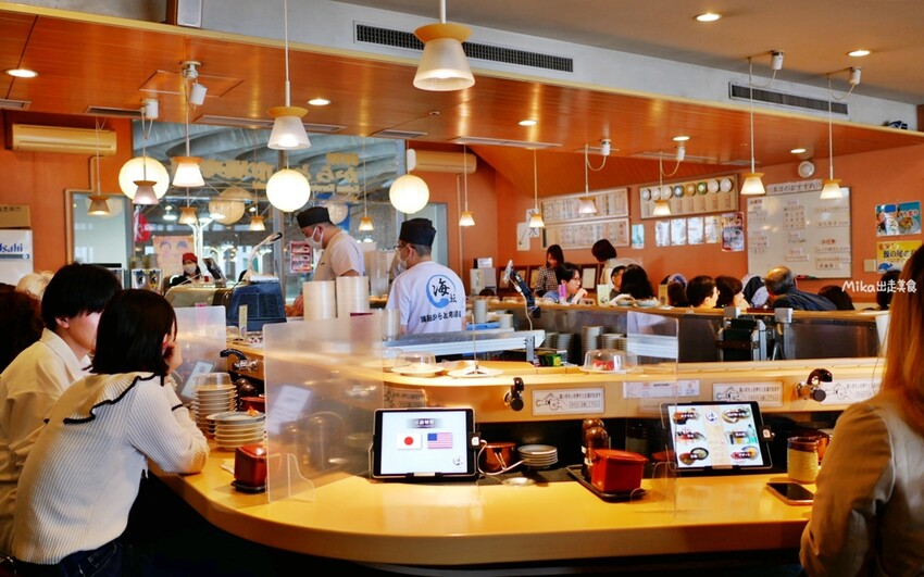但最熱門的還是迴轉壽司 海転からと,生意好到店內外都排滿滿的。