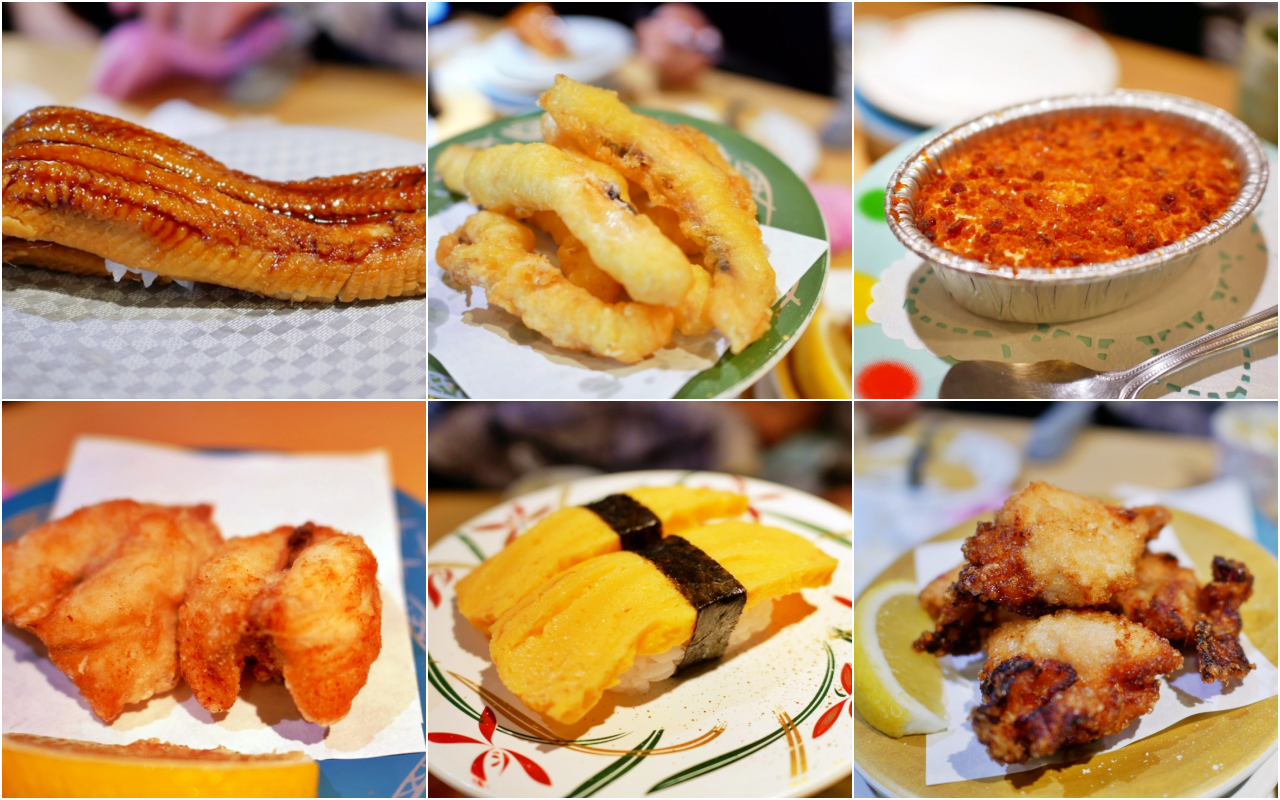 唐戶市場這裡最有名的就是河豚肉,這裡當然也有河豚壽司可以點!還有鯨魚肉也是這裡特有的,但吃起來沒什麼特別。然後還有煙燻鮭魚、我最愛的鰻魚壽司、甜蝦壽司等等….。