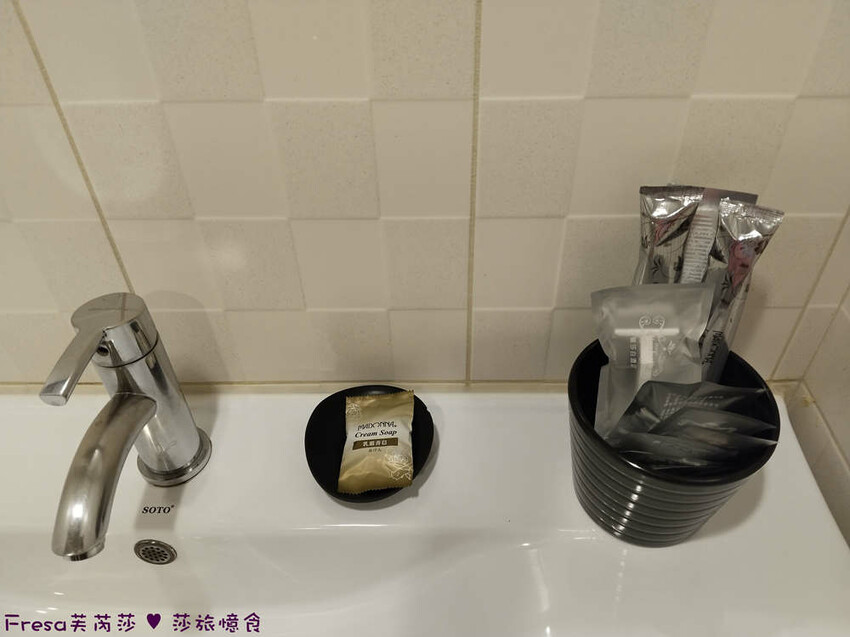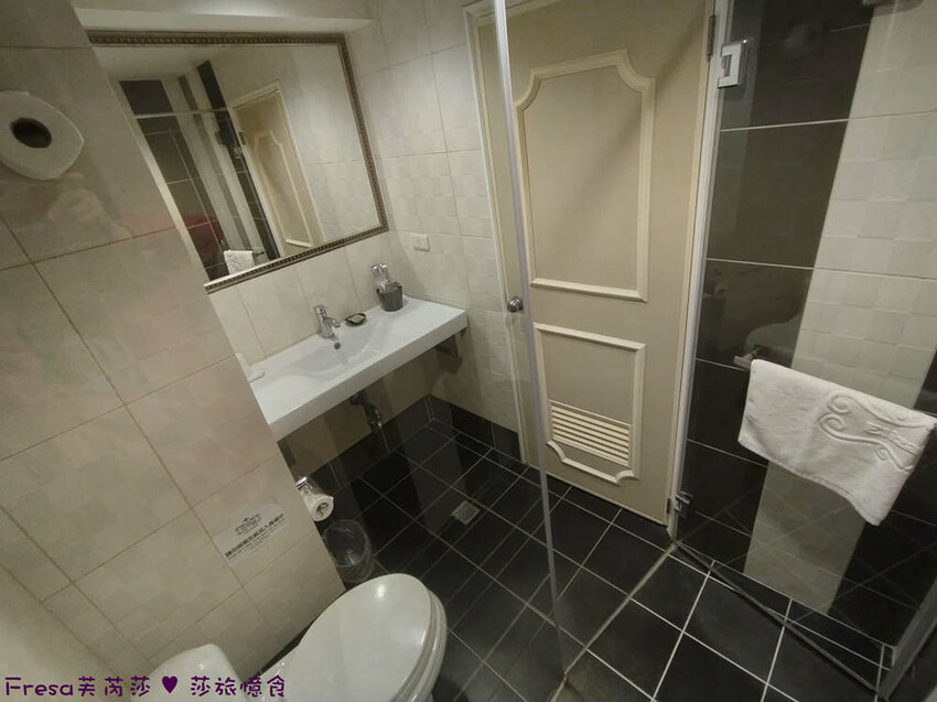洗手檯面和鏡框設計和豪華雙人房不一樣.