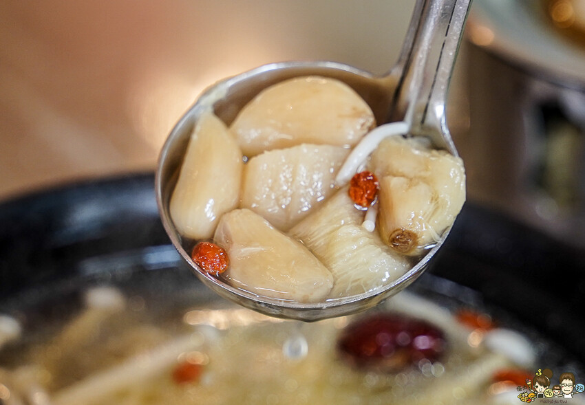 蒜頭都是自家發酵過,提出雞湯的滋味,柔和順口好喝