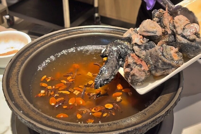 藍鑽蝦的個頭肥美大隻,肉質緊實新鮮、完全不會粉粉的,搭配爆炒招牌石頭湯更加鮮甜!