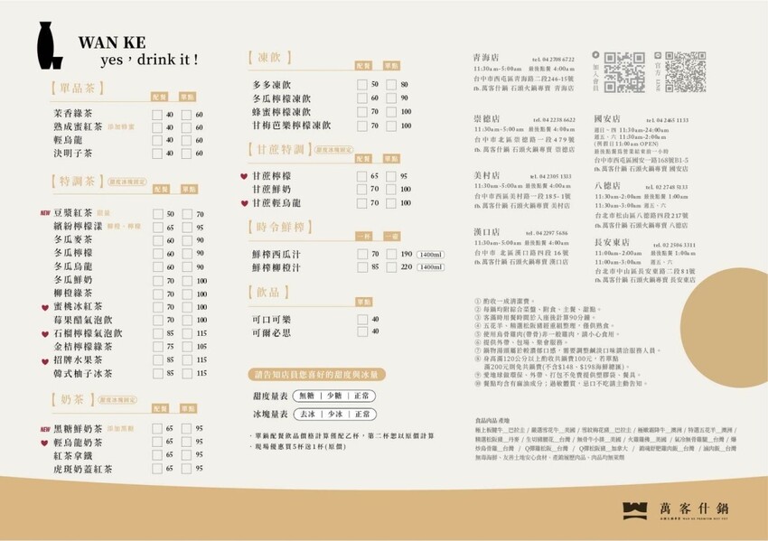 這裡提供萬客什鍋的菜單給你們參考,有石頭爆炒鍋、老饕精選鍋、剝皮辣椒鍋、燒酒麻香鍋等多個系列能夠選擇。