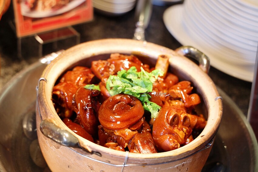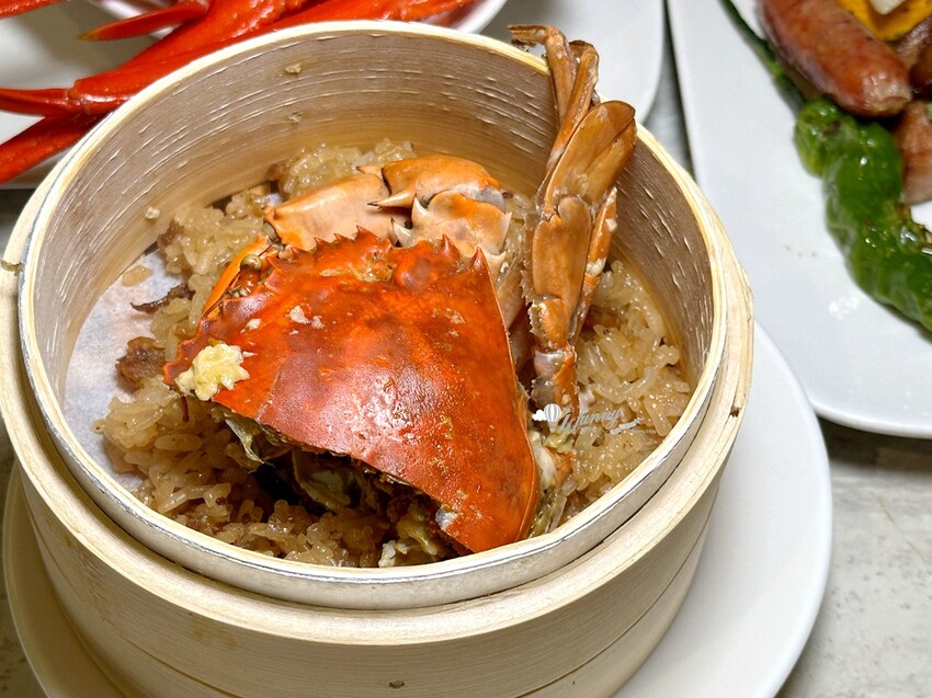 紅蟳米糕放置在熱食區,這裡也有許多阿霞飯店的經典好菜。