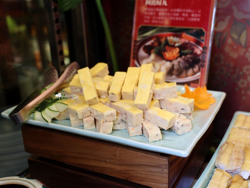 在餐廳最中央,以台式花布佈置的餐檯,放置的正是阿霞飯店知名的冷菜。