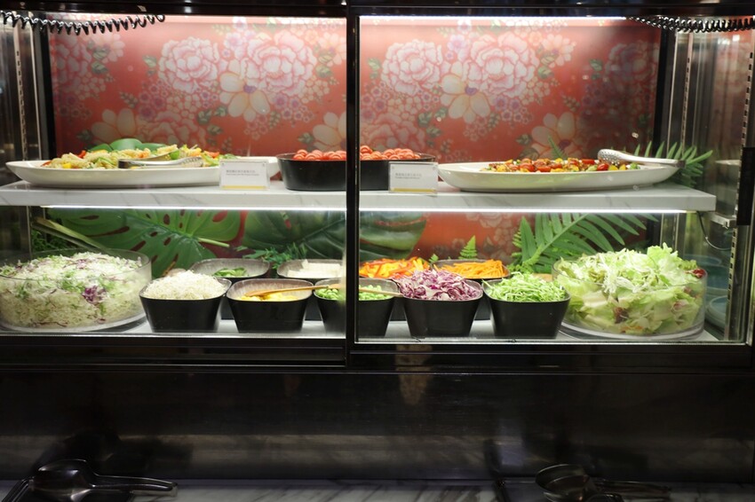 冰櫃冷盤沙拉「煙燻魚盤、綜合起司盤、綜合冷肉盤、螺旋麵彩椒芝麻葉沙拉、藜麥南瓜青花菜沙拉、綜合生菜」。
