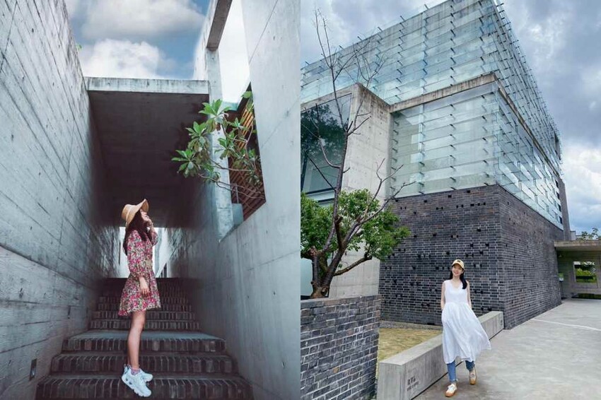「花若盛開,蝴蝶自來」很適合形容簡樸低調、小而巧又美的毓繡美術館,這棟隱身山林間的「毓繡美術館」,最大的特色便是清水模的建築設計,以「當代、寫實」為立館主軸,搭配東方庭園概念,呈現低調優雅的美。門口一片翠綠的竹林,有一種隱世的清幽,半露天的長廊巧妙地引進光線,從間隙中灑落形成千變萬化的光影效果,簡約、俐落,卻深深吸引漫步於長廊中那如夢似幻的感覺,到這裡能享受到身心靈都富足滿溢的文青旅行。