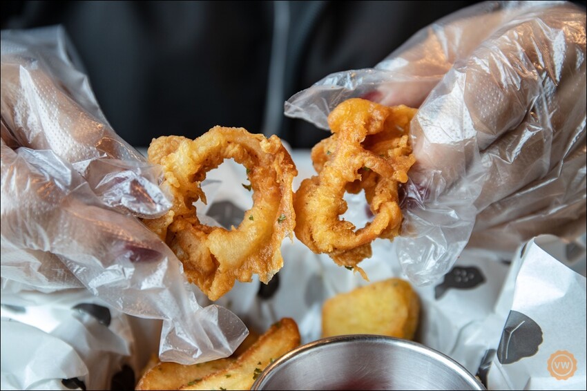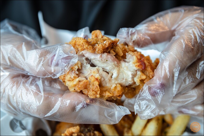 現點現做的炸雞還有附上薯條,而且選用無骨雞肉,搭配特調的酥炸粉製作而成的炸雞,也很適合小朋友吃。一口咬下時的咔滋口感,裡面的肉質其實可是相當的軟嫩又多汁之外,但是一點也不會有油膩感!