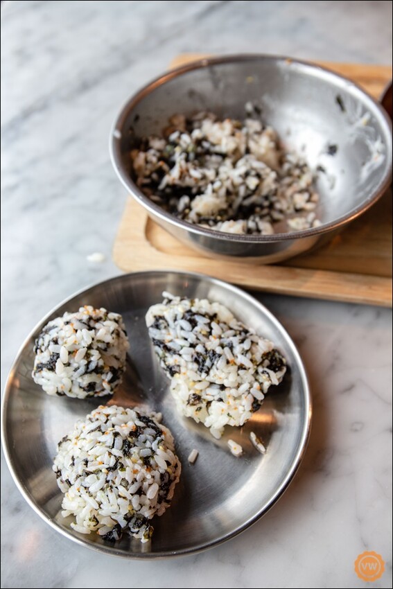 而這一大碗則是時下最流行的拌飯,除了有滿滿的美乃滋之外,還有大量的明太子及海苔,只要拌匀後就可以開吃之外,另外還可以依個人喜好捏成飯糰哦!話說這飯糰吃起來鹹鹹又帶點淡淡的甜味,可真是會讓人百吃不膩!