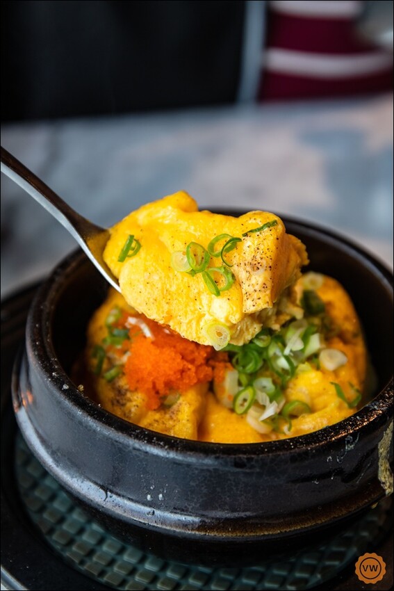 話說有在看韓劇的朋友,對韓式蒸蛋一定不陌生,是吧?從特製的小砂鍋裡溢出來的蒸蛋,不用飛韓國也可以吃的到口感細膩又軟嫩的蒸蛋!因為是使用蓄熱性佳的砂鍋,所以在上桌後,記得用湯匙沿著鍋邊內緣刮一下,才不會燒焦哦!