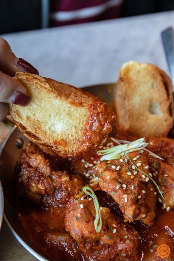 吸飽微辣醬汁的麵包一口咬下昤相當好吃,而且香氣十足!至於雞肉的部份更是選用去骨的雞肉,雖說是燉煮的方式,雞肉吃起來的口感還是相當軟嫩,而且這醬汁實在太讚了!另外沒拍到的馬鈴薯極其入味之外,口感也很鬆軟!
