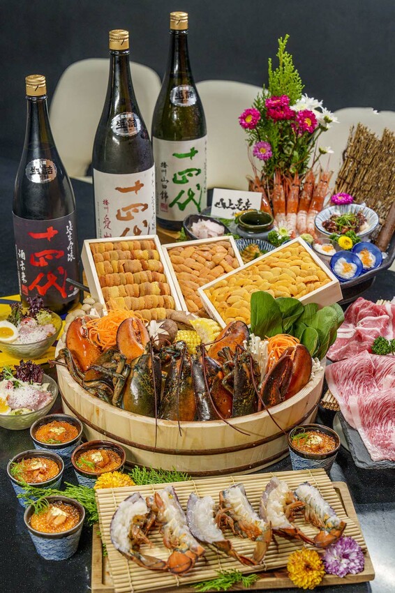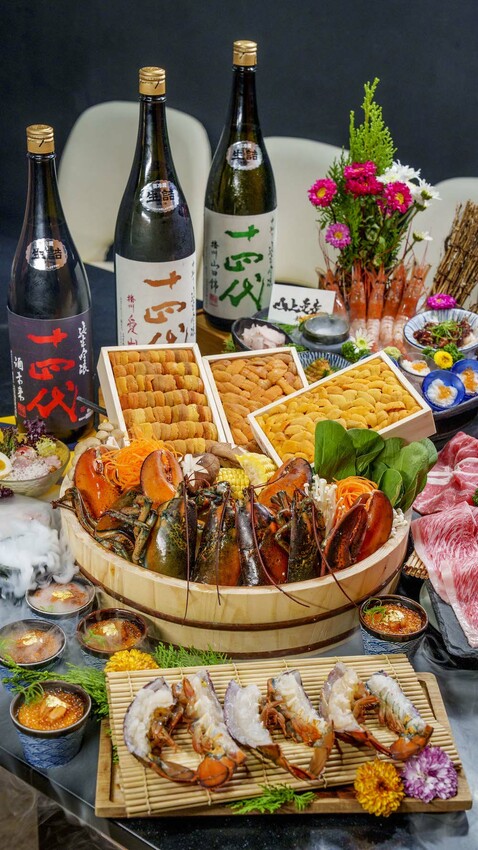 餐點的部分一樣是無菜單~一個人1,280 + 10 %服務費就可以享受到波士頓龍蝦三吃跟各種新鮮海鮮與和牛也可以依個人需求加購活體海鮮、酒水等等~加699就可以喝到清酒之王十四代喔