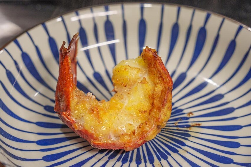 奶油香煎龍蝦,會由專人桌邊服務,在鍋中香煎到香味撲鼻,過程中散發出濃郁的奶油香氣煎到漂亮的金黃色之後上桌,肉質吃起來彈牙好咬,奶油的香氣讓龍蝦更加鮮嫩,但又不會影響海鮮獨有的海味