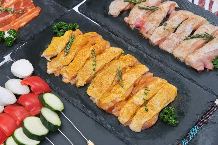 生食區(七盤肉品+一盤香腸+一盤蔬菜)