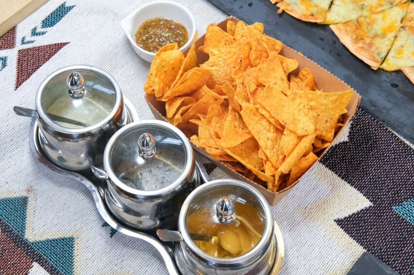熟食區(炭燒肋排燉菜鍋+法國軟麵包+ 玉米片+ 青醬起司烤餅 +蕈菇小點心 + 鮭魚小點心 )