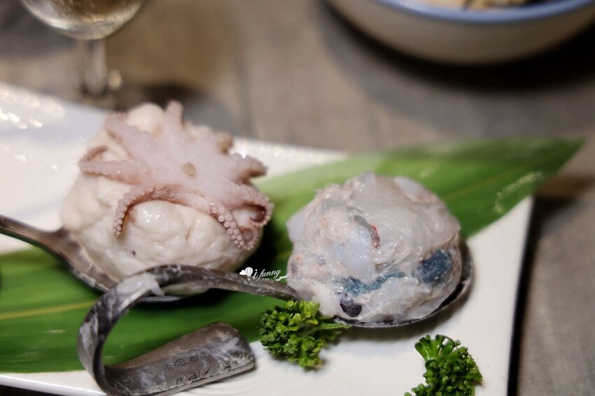 這個大師手工滑未免也太真材實料了吧!直接一整隻小章魚,還有滿滿的蝦仁。