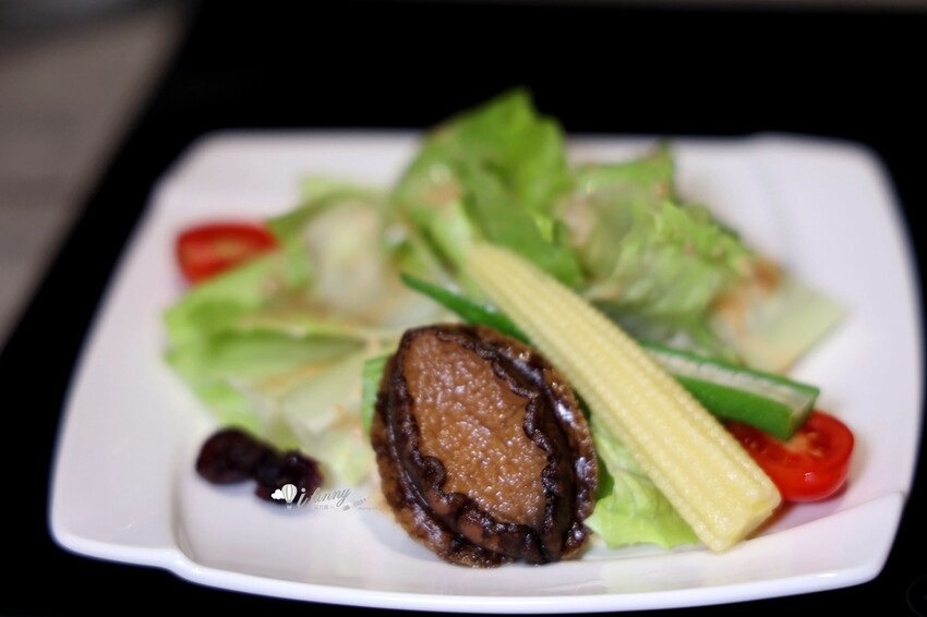 雖然只是前菜,但鮑魚的醬汁就煮了一個小時,再加鮑魚放入醬汁之中醃漬四個小時,讓鮑魚吸收了醬汁的精華。然而煮了這麼久,鮑魚卻依然軟嫰有彈性,搭配胡麻醬沙拉,很棒的開胃前菜。