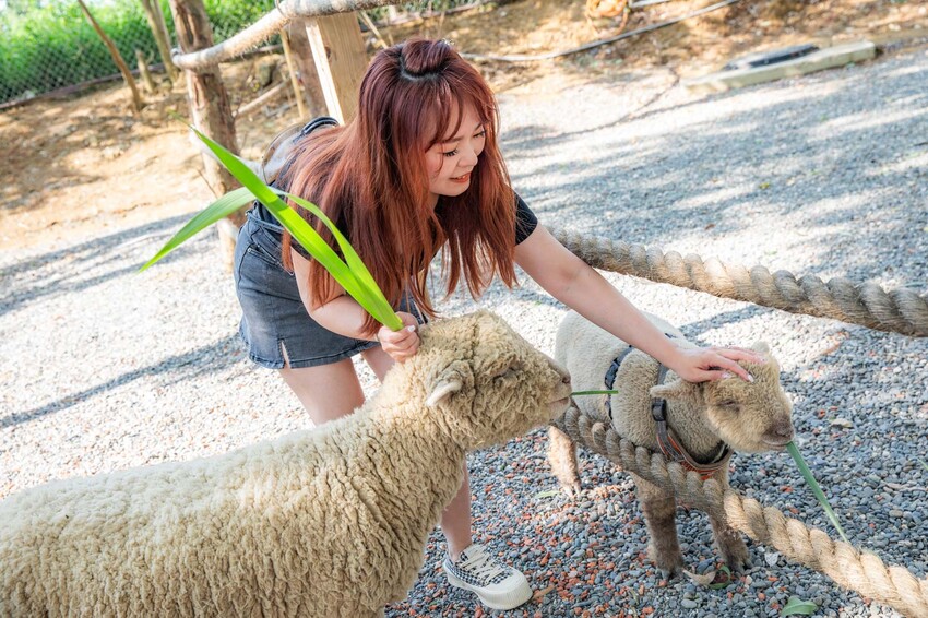 咩咩上樹萌寵樂園園區內的動物蠻多的,而且都是放養的狀態自由活動讓遊客可以親近,基本上你只要拿著牧草牠們們就會跟著你走,超級可愛的!黑鼻羊、水豚、跳跳羊、梅花鹿、羊駝等等,而且還有超可愛的小綿羊!