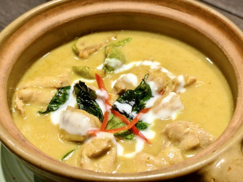 這道菜以辣椒、椰漿、綠咖哩、檸檬葉等經典泰式香料為主要調味,