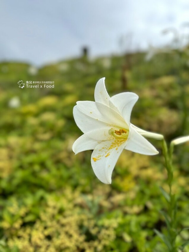 全台百合花從北至南都能見到美麗的蹤跡,百合草原位於北濱公路金山至野柳段,二側的百合花從成推的綠葉中冒出一朵朵白色浪漫,可惜5/17到訪時天空飄了雨,花況也不是太好,沒有想像中的茂盛。