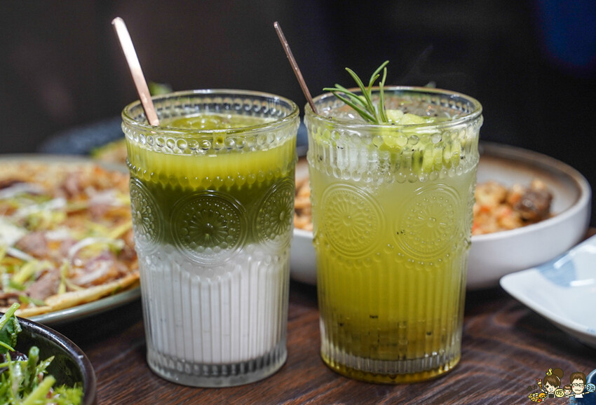 靜岡抹茶牛奶歐蕾、奇異果氣泡飲