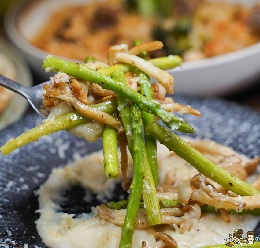 使用當季新鮮蘆筍,搭配薯泥、起司、綜合菇