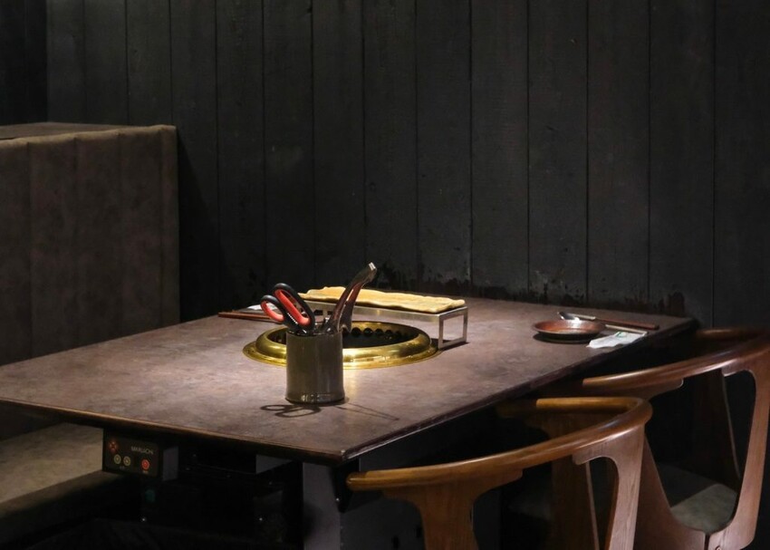 ▼【熟菜豚屋 熟成豚X韓國創作料理】用餐環境以黑色系為主軸,低調簡約打造出奢華氛圍感,有一種來到私人招待所的氛圍,很適合慶生、情侶約會或多人聚餐~